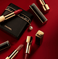 Una barra de labios en el estuche negro y dorado con el icónico clic, disponible en nuevos tonos modernos y sofisticados.